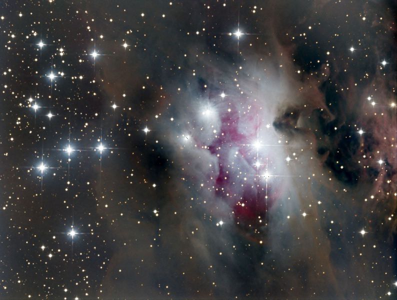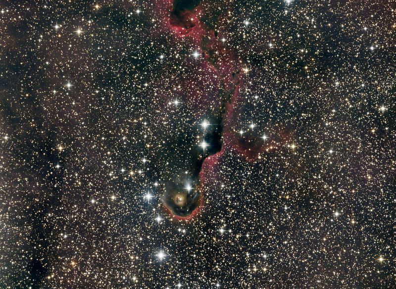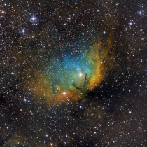 Nebel gehören für mich zu den schönsten, aber auch herausfordernsten photografischen Zielen. Die üblichen für Amateurinstrumente erreichbaren Nebel sind augedehnte HAlpha Gebiete / Emissionsnebel. Auf (RGB) Farbaufnahmen der HAlpha Emissionsnebel dominiert Rot, die Wellenlänge des einfach angeregten Wasserstoffs. Farbenprächtiger dagegen sind sind Planetarische Nebel, "kurzlebige" Überreste einer Supernova. Die meisten planetarischen Nebel sind im Vergleich zu den HAlpha Regionen klein und mit meinen Instrumenten kaum im Detail auflösbar. Faszinierend und herausfordernd sind dann die Dunkel- und Refelxionsnebel, wie etwa der Irisnebel oder Teile des Elefantenrüsselnebels. Hier dominieren Staub/Molekülwolken, die die Strahlung junger heißer Sterne selektiv reflektieren.