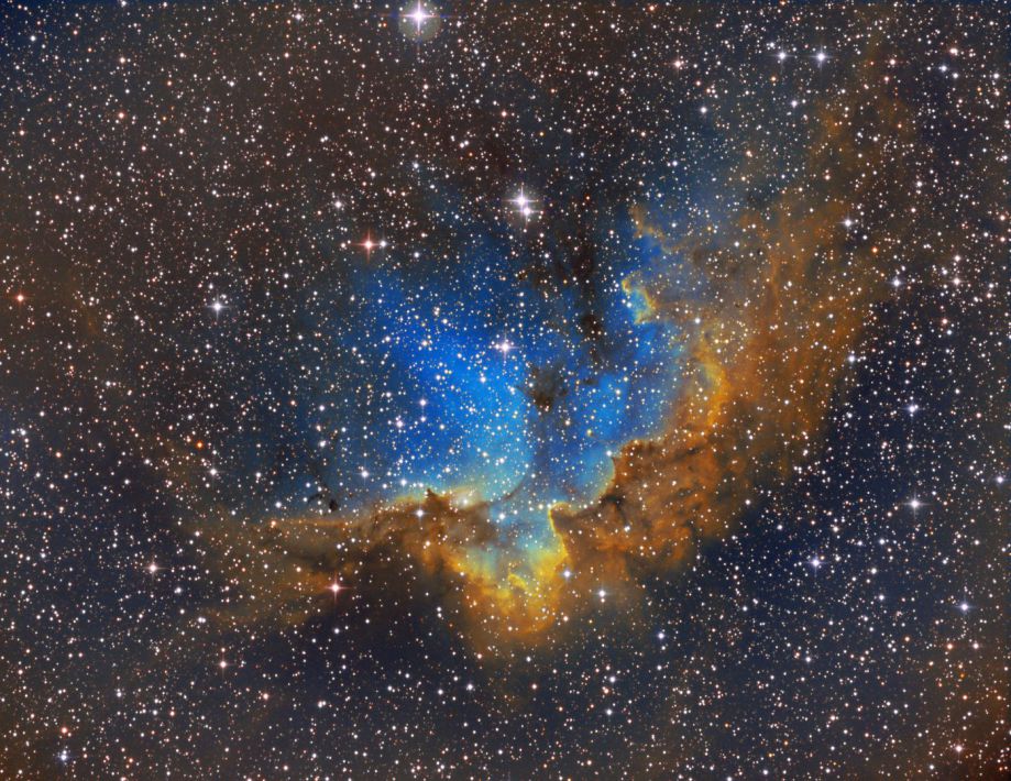NGC7380 (SH2-142) auch Zauberernebel genannt. Ein etwa 7000LJ entfernter Emissionsnebe mit Sternentstehungsgebiet um einen offenen Sternhaufen. .