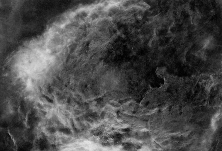 Eine sehr eigene Schönheit haben die reinen sternlosen Schmalbandaufnahmen, in denen die Strukturen fast dreidimensional wirken.