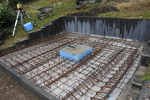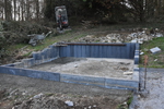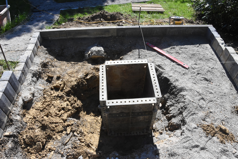 Wir haben ein Grundstück mit Hanglage, weshalb ich zunächst einmal eine ebene Fläche schaffen musste. Bei den Bodenverhältnissen - Schotter, Bruchstein - ging das nur mit schwerem Gerät. Die Säule sollte auf einem separaten Betonblock stehen und vom restlichen Fundament mit einem Spalt gegen Trittschall geschützt sein.