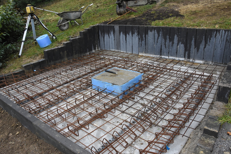 Beim Gießen des Fundamentes hatte ich der Baufirma eingeschärft, dass das Fundament absolut eben sein müsse und das haben sie auch ganz prima hinbekommen.