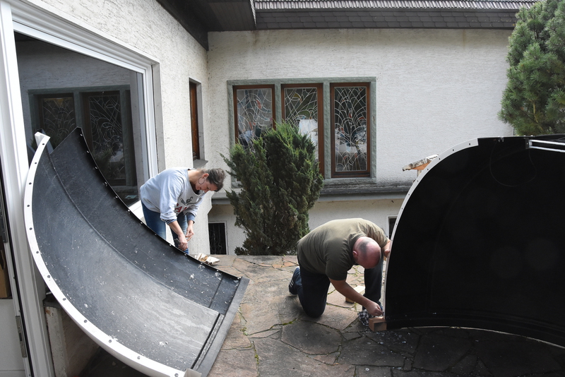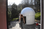 Zu dritt war die Kuppel in zwei Tagen so weit aufgebaut, dass sie ihren Platz auf dem Fundament aufnehmen konnte. Der Boden war noch nackter Beton.