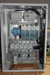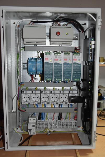 Ich habe eine nahezu kindliche Freude an vielen bunten Lichtern und davon bieten die Geräte im Schaltschtrank ausreichend viele. Ich hatte daher eine Schaltschranktür aus Glas bestellt, damit ich sehen kann ob alles so leuchtet wie es soll.